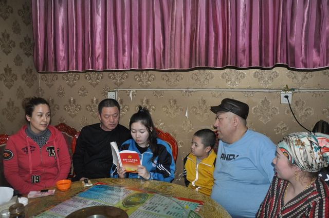 二是共同学习十九大、知晓惠民好政策。为了让党的十九大精神家喻户晓,筑牢民族团结和社会稳定的钢铁长城,民警们与“亲戚们”围坐在一起,除了询问家庭近况、生活困难等以外,还结合生活实际向“亲戚们”宣传讲解党的十九大精神,帮助“亲戚们”了解近年来党的惠民好政策,叮嘱亲戚们:有今天幸福的生活是我们党、我们国家通过艰苦奋斗、不懈努力得来的。如今一系列的惠民政策,上学不交费、看病有医保、养老有保证等都给我们带来了方便实惠,我们要感恩党,心存敬畏,思想积极向上,各民族要像“石榴籽一样紧紧团结在一起”,各民族共同努力、共同繁荣,要以习近平同志为核心的党中央看齐,共创美丽富饶和谐新疆。
