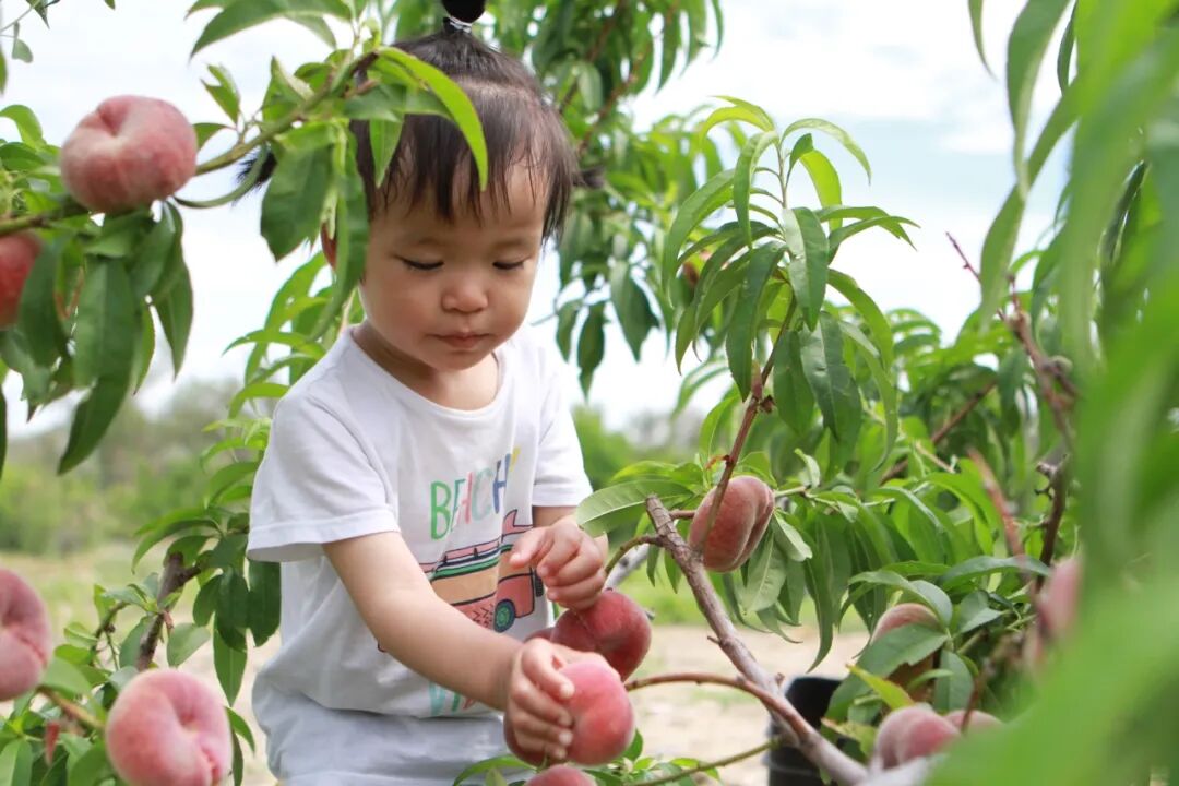 幼儿在一八八团一连千亩桃园体验采摘乐趣。
