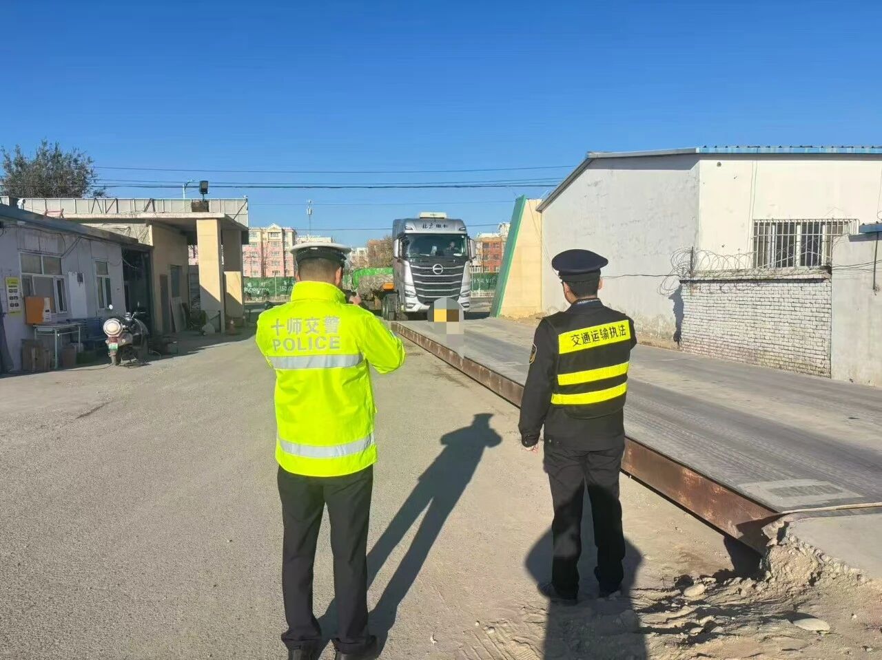 为坚决遏制货车超限超载违法行为,深入推进道路交通事故预防“减量控大”工作,结合“百日攻坚”集中清查行动要求,近日,十师交警联合新疆维吾尔自治区交通运输综合行政执法局阿勒泰执法支队北屯执法大队成立联合执法专班,聚焦辖区货运车辆高频通行路段,开展“百吨王”专项整治行动,全力守护道路交通安全与通行秩序。
