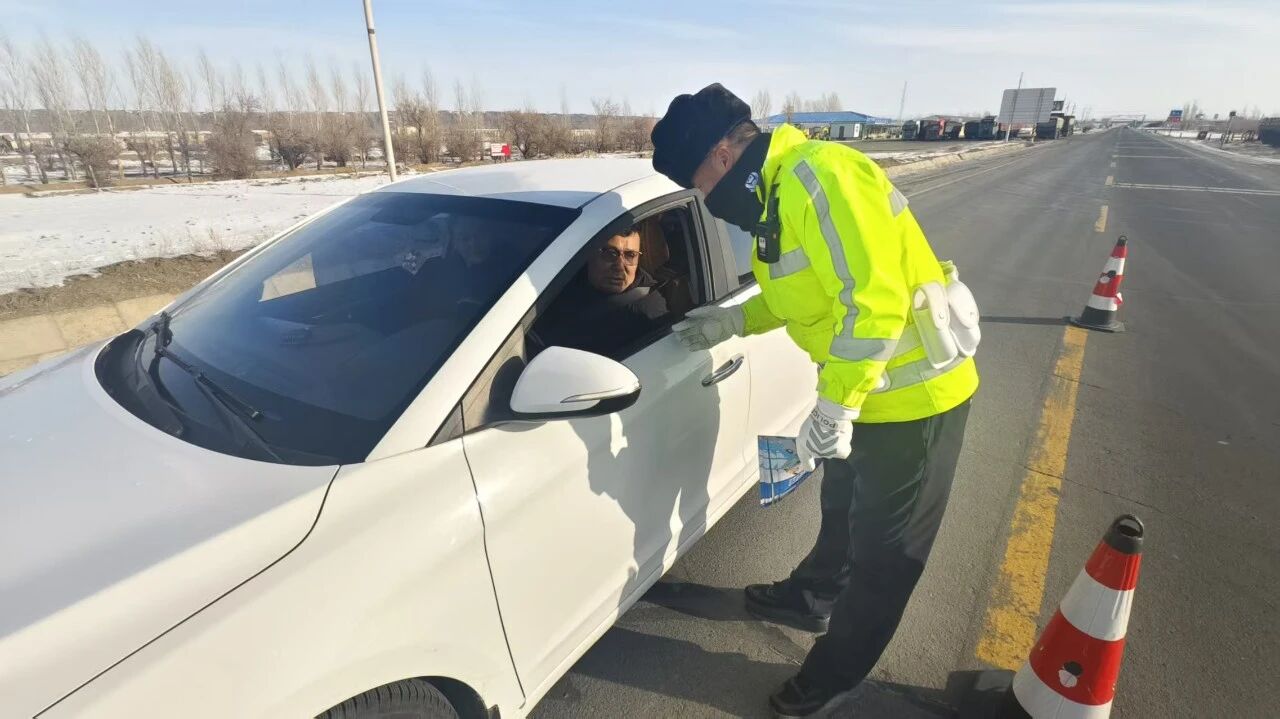 路面管控,国省道亮起安全“警示灯”。结合冬季道路交通特点及事故预防工作实际,强化国省道路面管控力度,依托临时检查点对过往客货运车辆、连队面包车等重点车辆开展安全检查,严格查处超员、疲劳驾驶等交通违法行为。在执法过程中,同步向驾驶人发放冬季安全行车提示卡,讲解恶劣天气下安全驾驶技巧和应急处置方法,反复叮嘱:“师傅,雪天路滑,控制车速是关键!遇到路口、人行道提前减速,一个礼让手势可能就避免一次事故。”同时提醒驾驶人出车前仔细检查车辆安全状况,行车中保持安全车速车距,做到“文明驾驶、礼让先行”,确保出行平安。