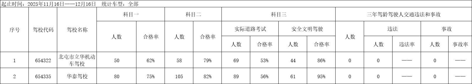根据《机动车驾驶证申领和使用规定》《机动车驾驶人考试工作规范》等规定,为加强社会对驾驶培训机构的监督,促进驾培机构的培训管理,提高驾驶人培训质量,减少道路交通事故发生,现将2025年12月份辖区各机动车驾驶人培训机构培训质量予以公布。