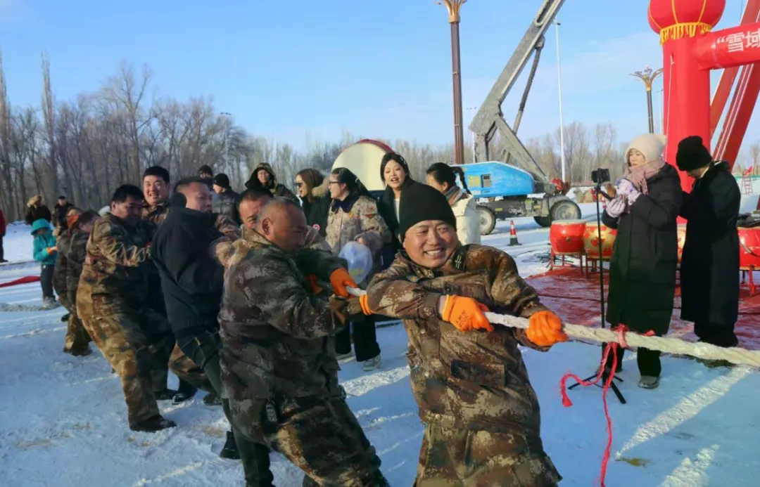 除了热血沸腾的马术表演与刁羊比赛,冰上保龄球、雪地雪圈拉力赛、拔河、集体跳绳等趣味项目也吸引了全年龄段职工群众踊跃参与。