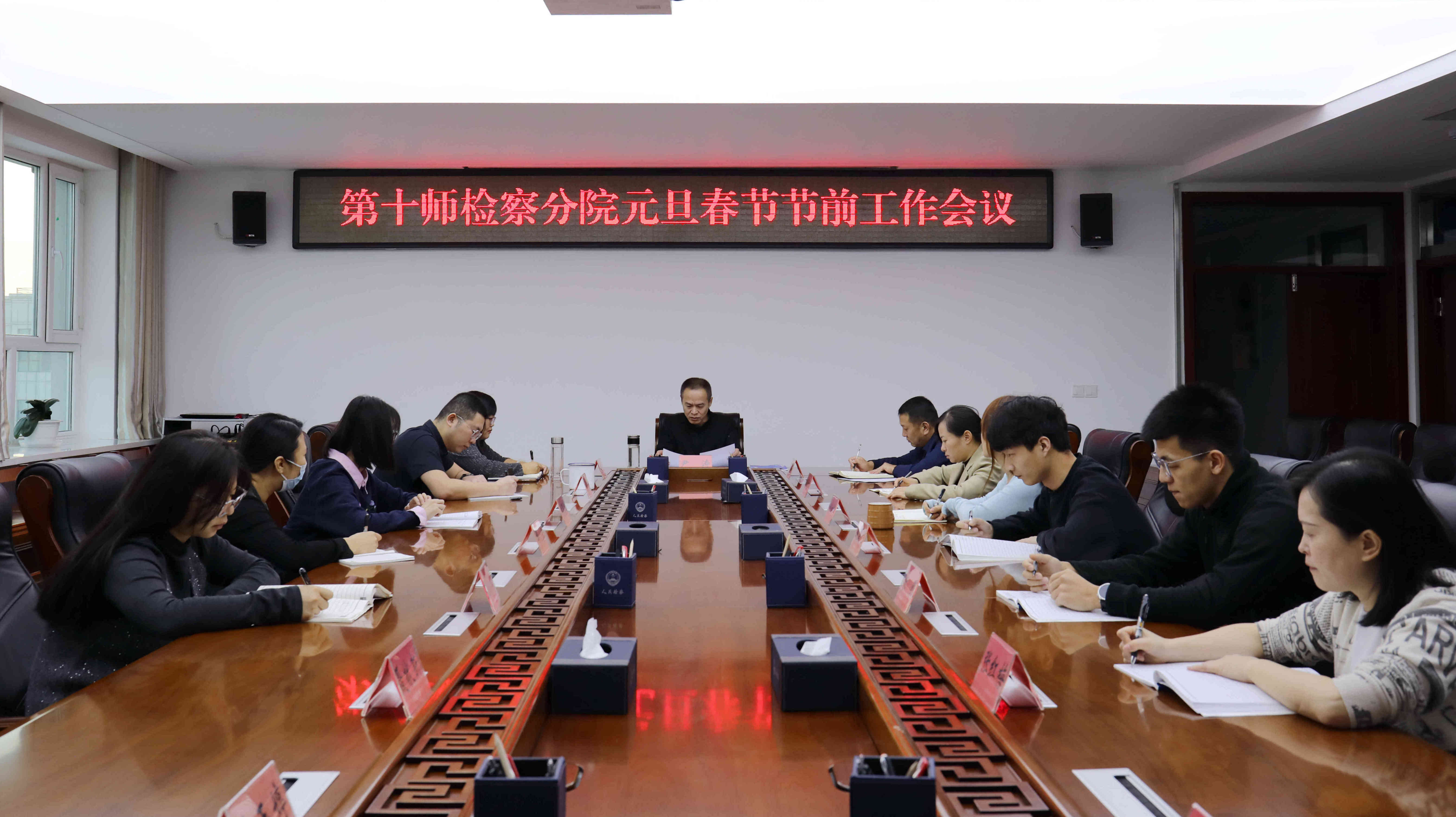 元旦、春节将至,为进一步做好元旦、春节期间各项工作,12月31日,第十师检察分院召开元旦春节节前工作会议。分院党组副书记、副检察长尹涛主持会议,分院全体检察人员参会。