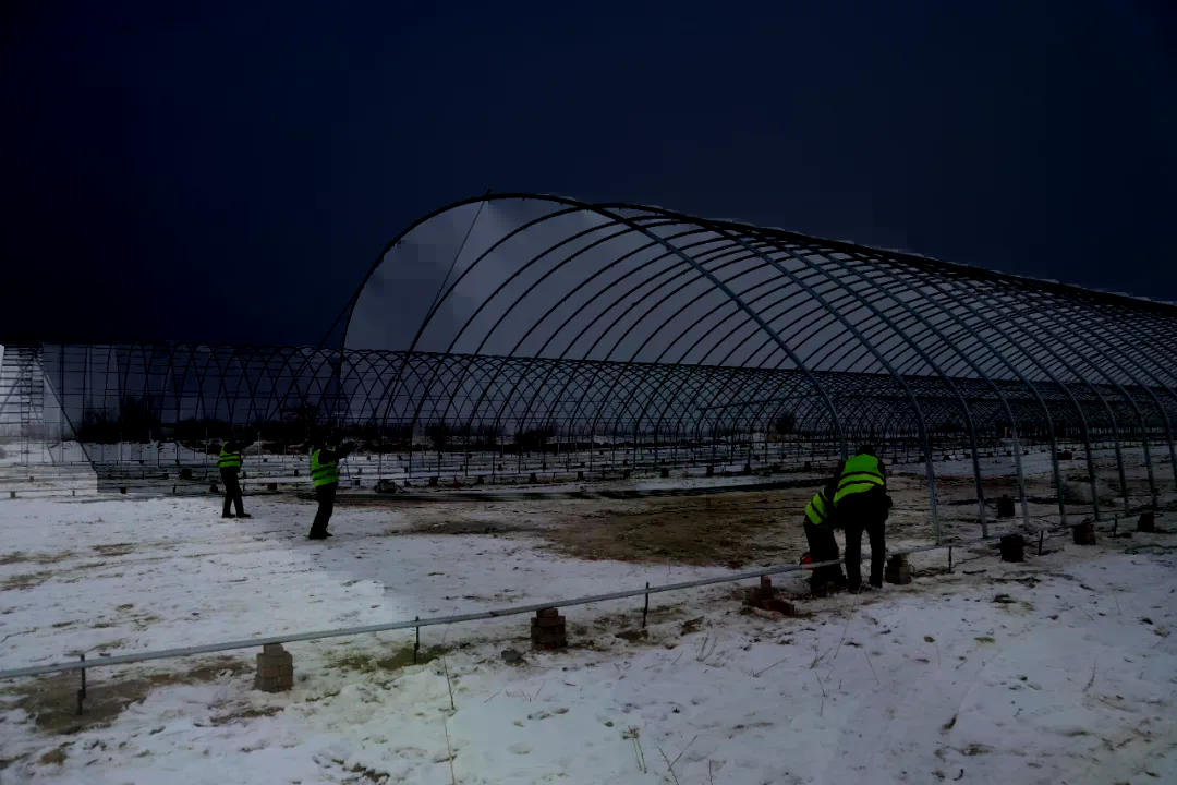 1月7日,一八七团生姜产业园建设一期工程的十个生姜育苗大棚钢架结构搭建进入尾声,预计将于3月中旬正式启动生姜苗的大棚移栽种植工作。