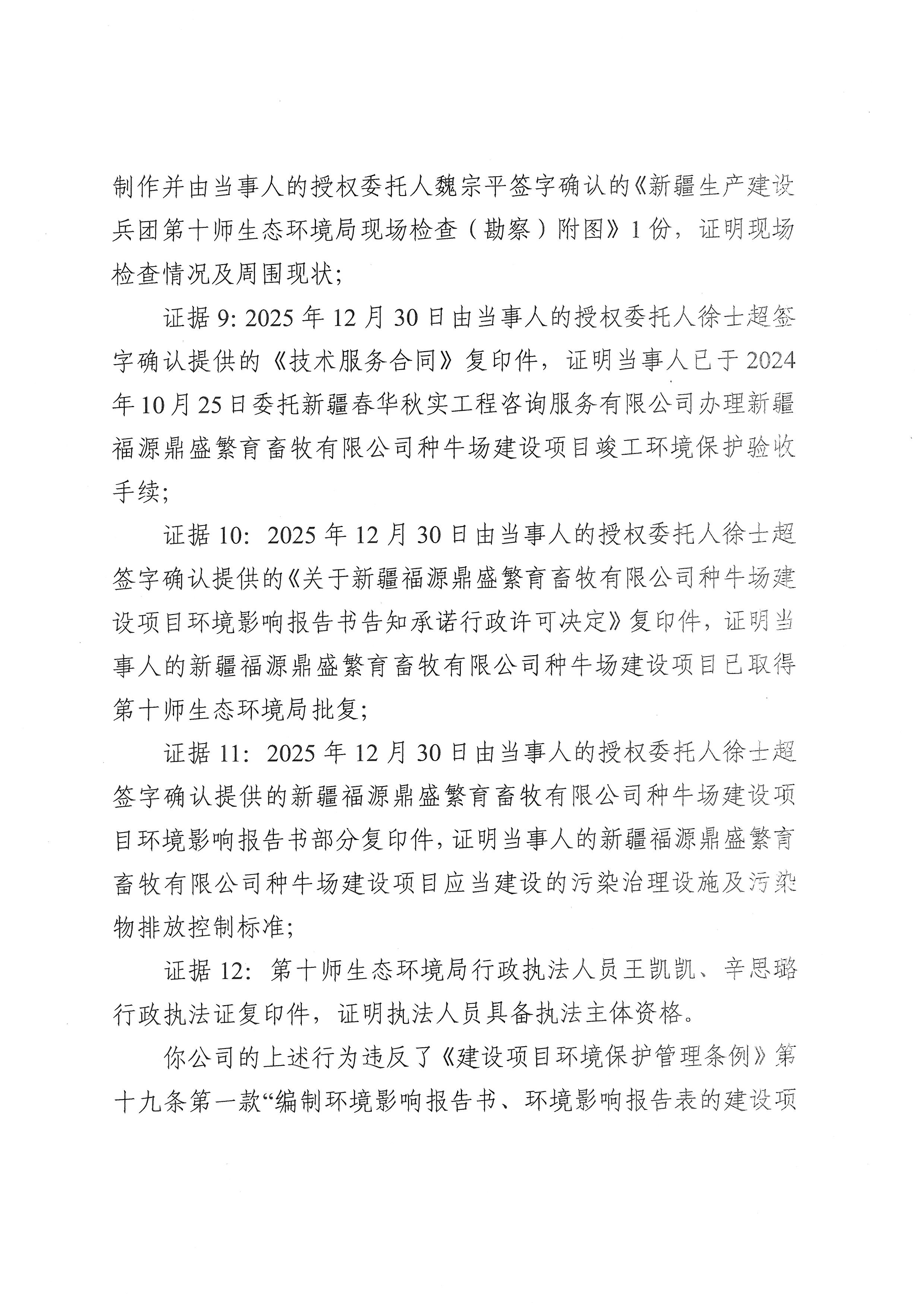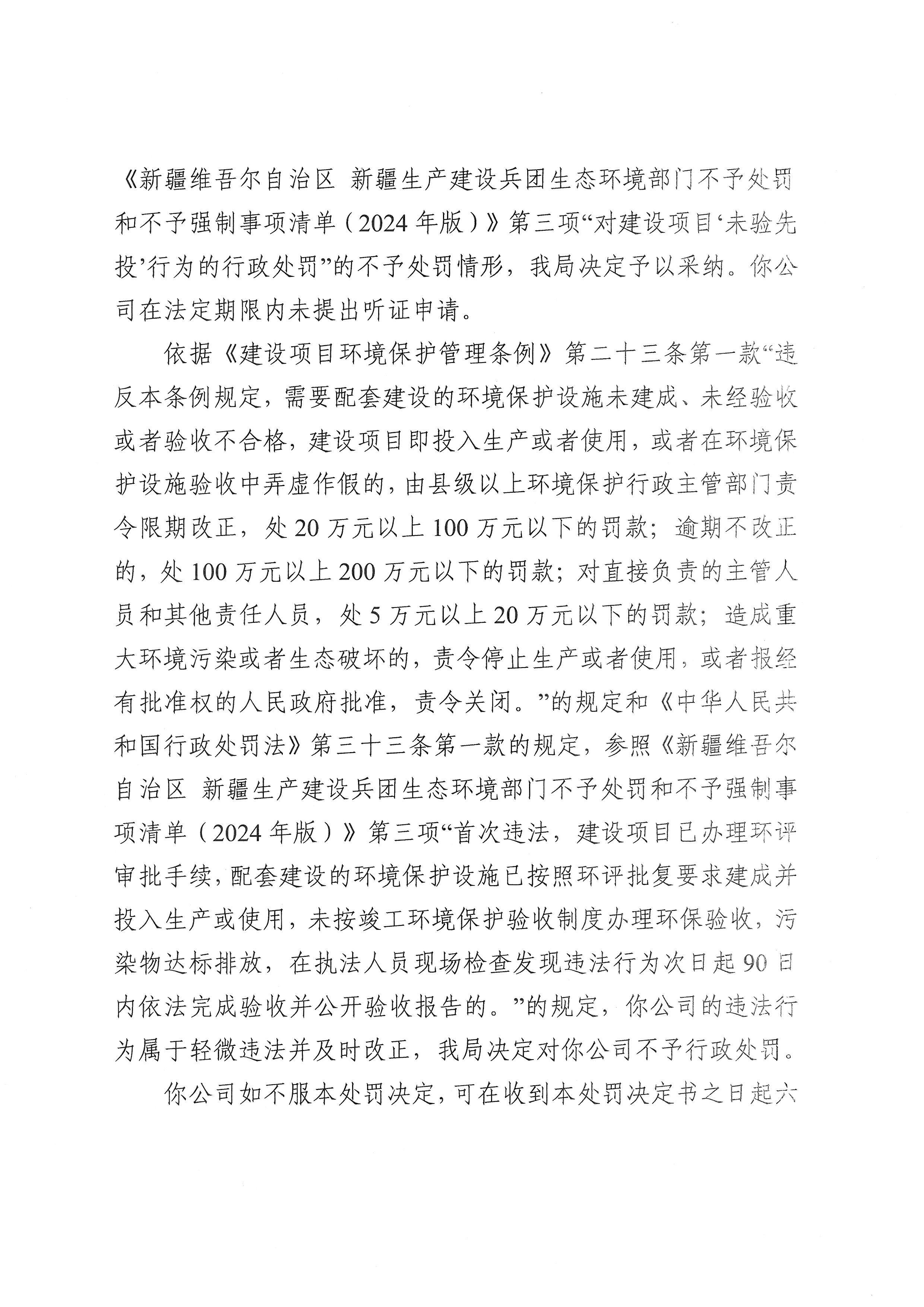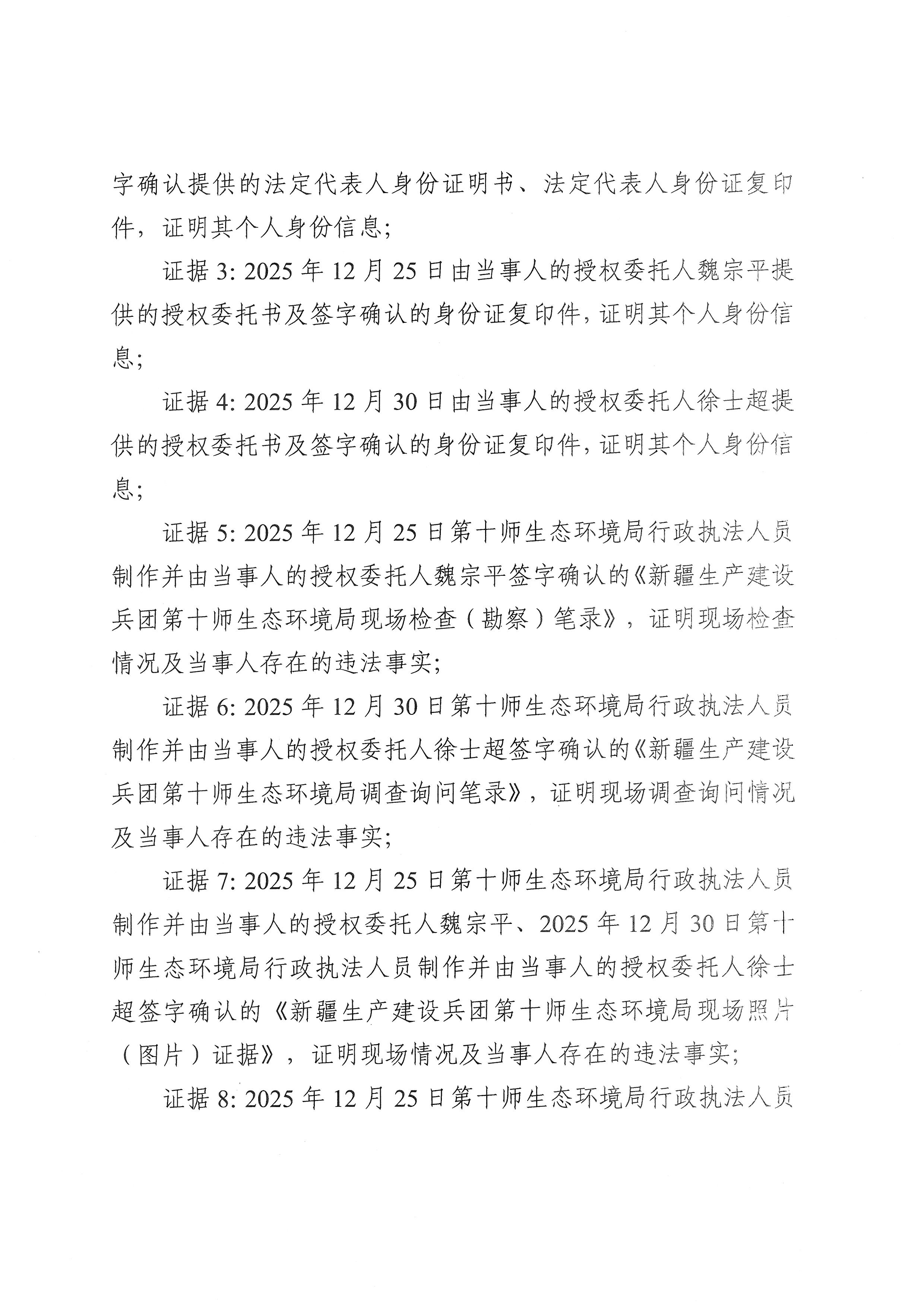 新疆生产建设兵团第十师生态环境局不予行政处罚决定书(十师环不罚〔2026〕1号)