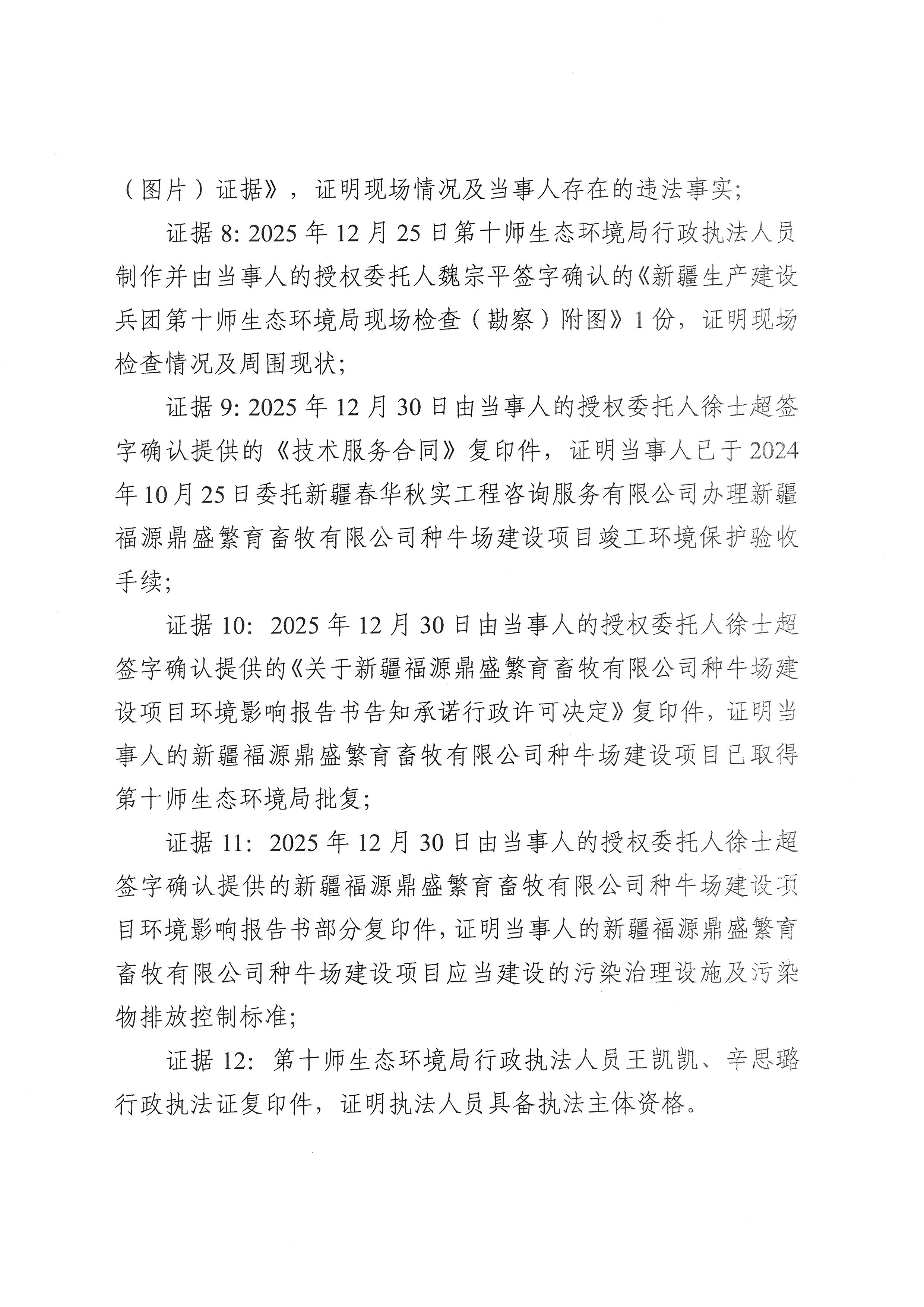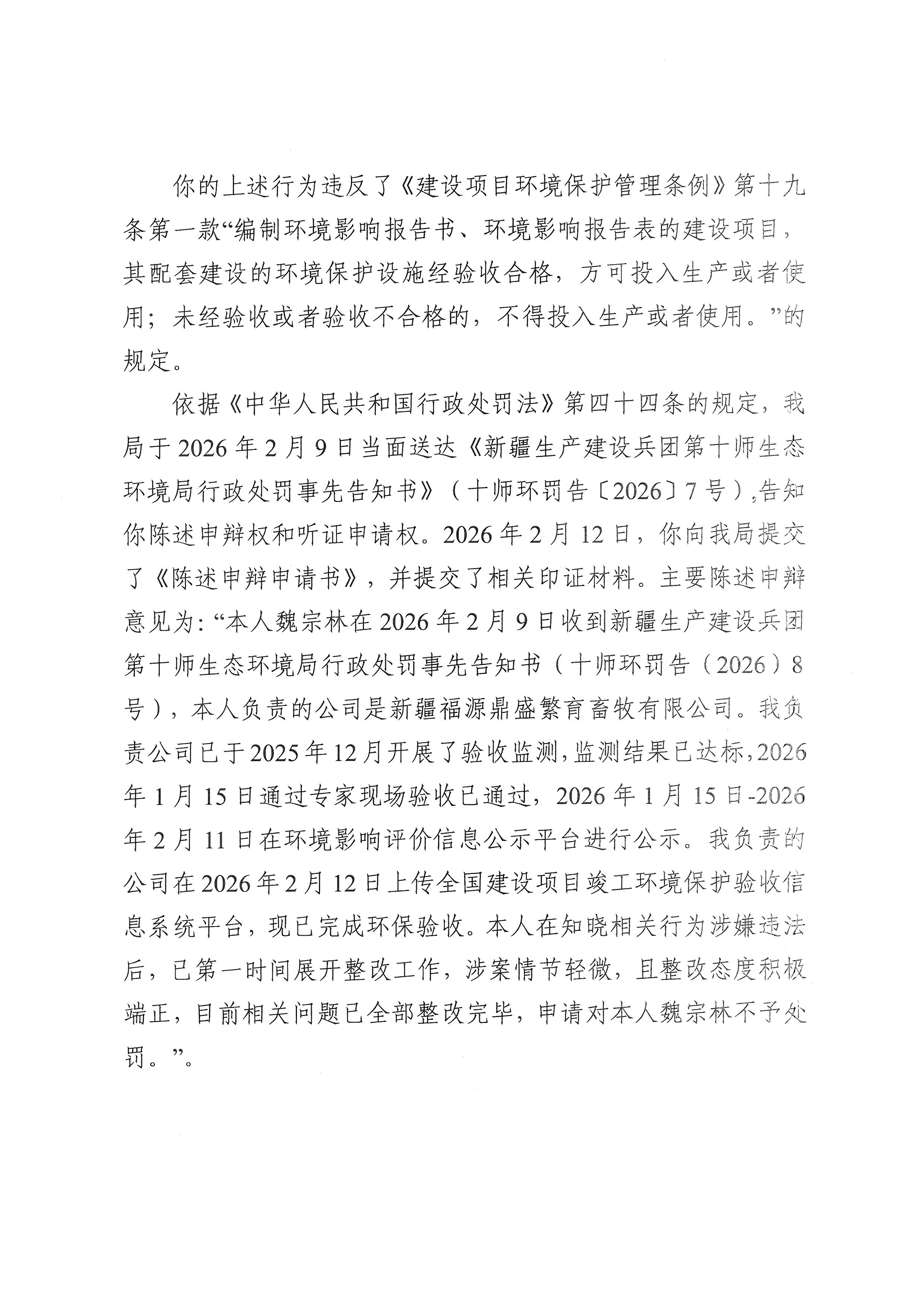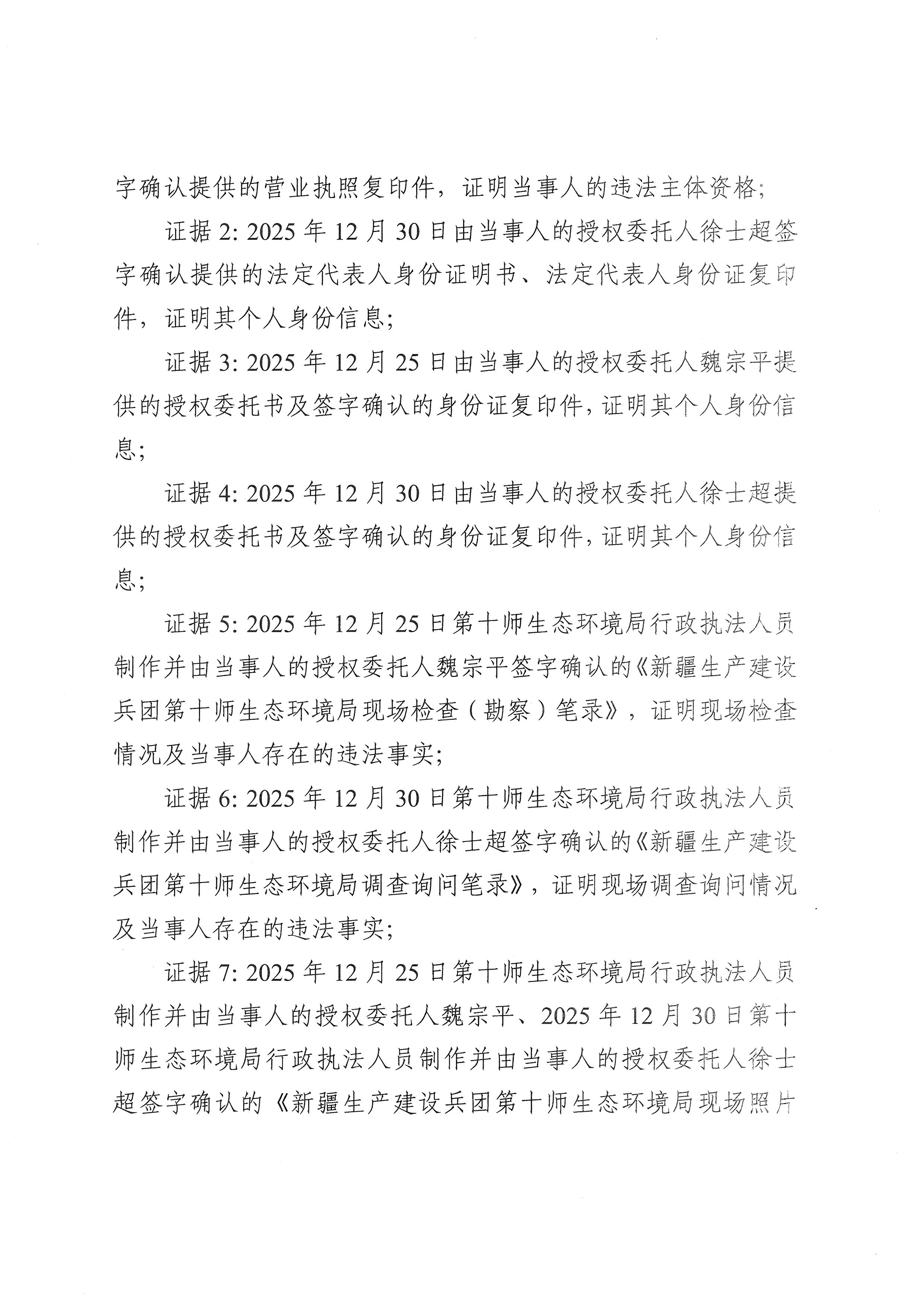 新疆生产建设兵团第十师生态环境局不予行政处罚决定书(十师环不罚〔2026〕2号)