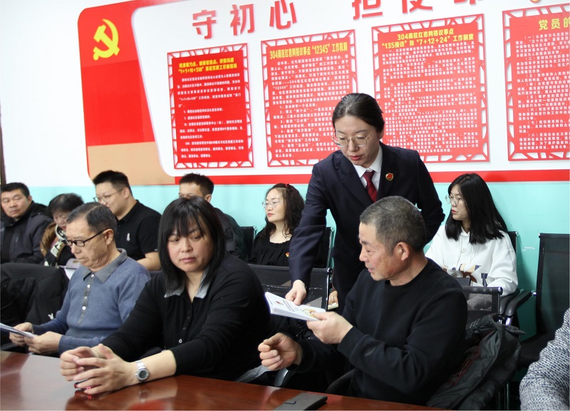 随后,召开民情恳谈会暨法律便民服务活动,扎实落实“三联三问三解”工作机制,将司法为民服务延伸至基层一线。全体党员与社区工作人员、居民代表围坐恳谈,倾听群众法治难题与民生诉求,详细记录居民反映的劳务用工、邻里纠纷、权益保护等方面的法律诉求。用通俗易懂语言释法说理,细致解答法律疑问、提供专业解决方案;同时发放普法宣传资料,普及防范非法集资、司法救助等与群众生活密切相关的法律法规,引导群众尊法学法守法用法,依法维护自身合法权益。