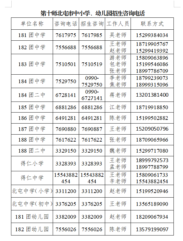 报名期间,师市教育局在师市政务服务大厅“教育入学一件事”窗口、师市各义务教育学校、幼儿园均设有政策咨询电话和服务点。如有任何报名问题可致电或就近至服务点咨询。