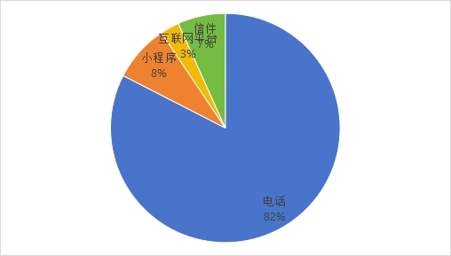 诉求来源渠道主要为:电话123件,占总量的82%;投诉举报信件10件,占总量的7%;小程序12件,占总量的8%,互联网平台4件,占总量的3%。接收渠道中,拨打12315及96359热线进行投诉举报仍是群众反映诉求的主要渠道。第十师市场监督管理局对各渠道的投诉举报信息,及时登记,统一处理,实现投诉举报信息一体化。