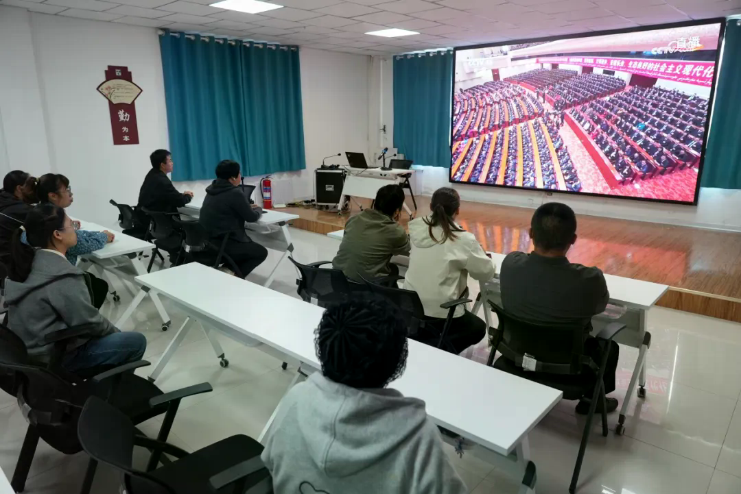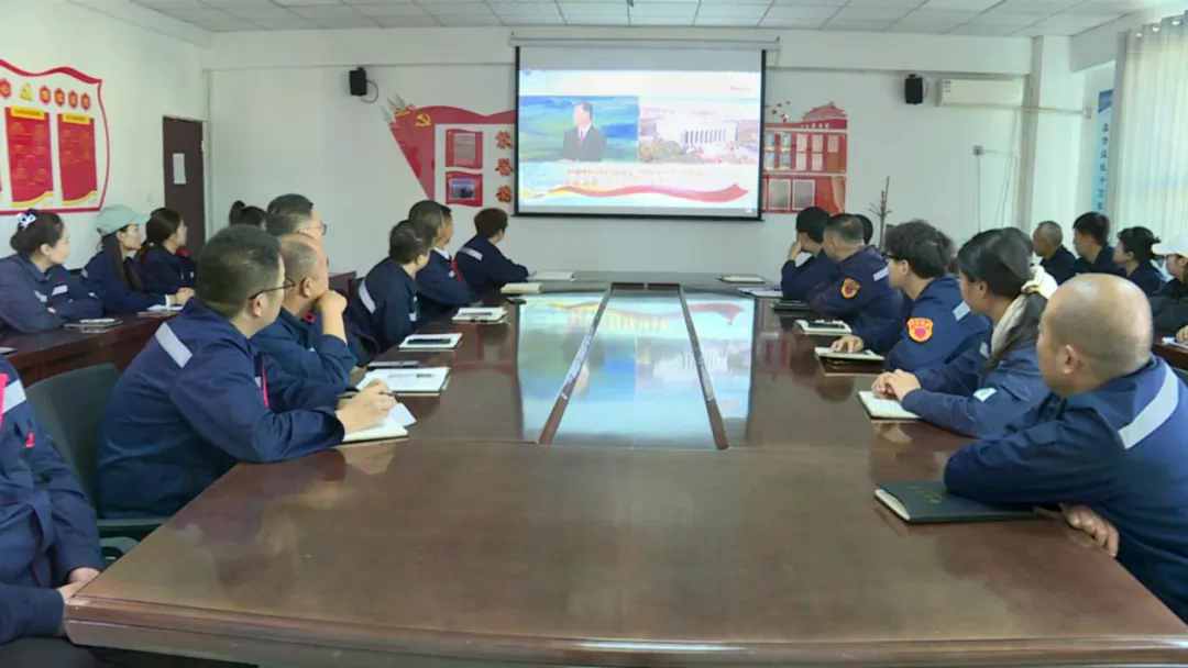 十师北屯市供热公司组织干部职工观看新疆维吾尔自治区成立70周年庆祝大会。王玉洁 摄