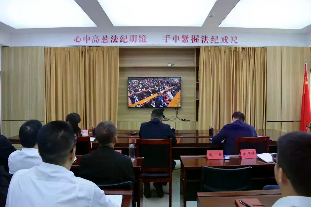 十师北屯市纪委监委组织干部职工观看新疆维吾尔自治区成立70周年庆祝大会。卡吾沙尔 摄
