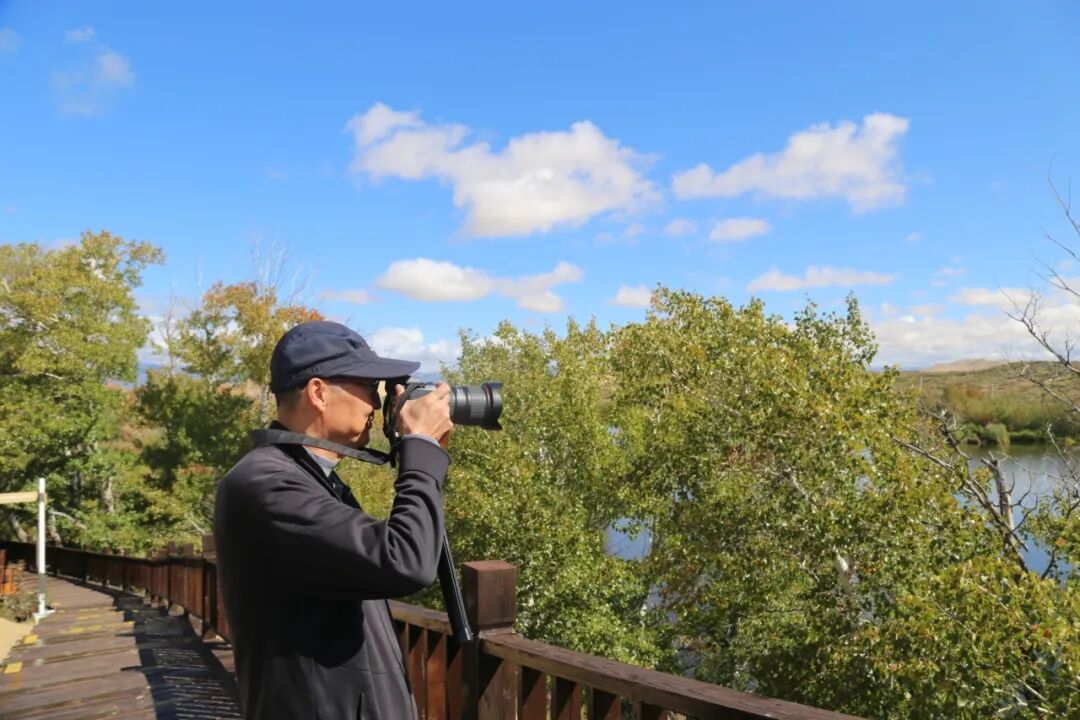 与此同时,各地游客结伴以团体游、自驾游等方式慕名来到一八五团白沙湖景区,环绕白沙湖、鸣沙山、红叶林等处观赏优美的湖光山色,登高远望俯瞰景色。蓝天白云下,游客兴致勃勃地拍摄波光粼粼的湖面、欣赏层林尽染的湖光山色,用镜头摄取美好瞬间,沉浸在景色旖旎的优美风光中。
