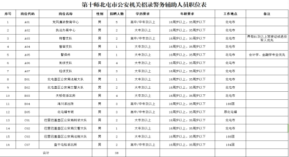 附件:1.第十师北屯市公安机关招录警务辅助人员岗位表