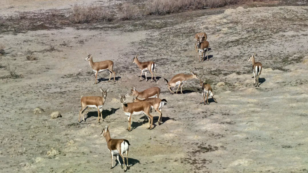 十师丰庆湖国家湿地公园完善的生态系统,成为候鸟迁徙途中的“能量补给站”,为它们提供了充足的食物资源与安全的栖息秘境。随着生态环境持续向好,这里植被日渐繁茂,湖畔还生活着成群的黄羊,多样生物在此共生共栖,绘就出一幅人与自然和谐相融的生态画卷。