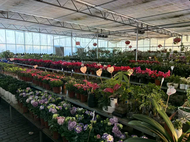 随着春节临近,花卉销售进入传统旺季,基地的生意日益红火。负责人冯玲介绍,为迎接采购热潮,基地提前备足了各类货源,并开通线上配送服务,确保市民能方便地买到新鲜称心的绿植,把生机与喜庆带回家。