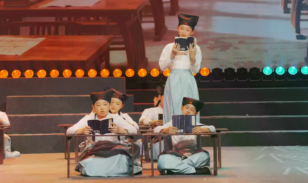 展演现场,三大篇章层层递进、精彩纷呈,构建起跨越古今的精神对话。第一篇章“古韵新声”中,《声律启蒙》的书声琅琅穿越时空,“飞花令”的雅韵交锋妙趣横生,《敕勒歌》的雄浑吟唱勾勒出天地苍穹的壮阔意境,字字句句凝聚着中华民族的精神基因与文化气韵,让观众在经典诵读中触摸中华文明的千年温度。